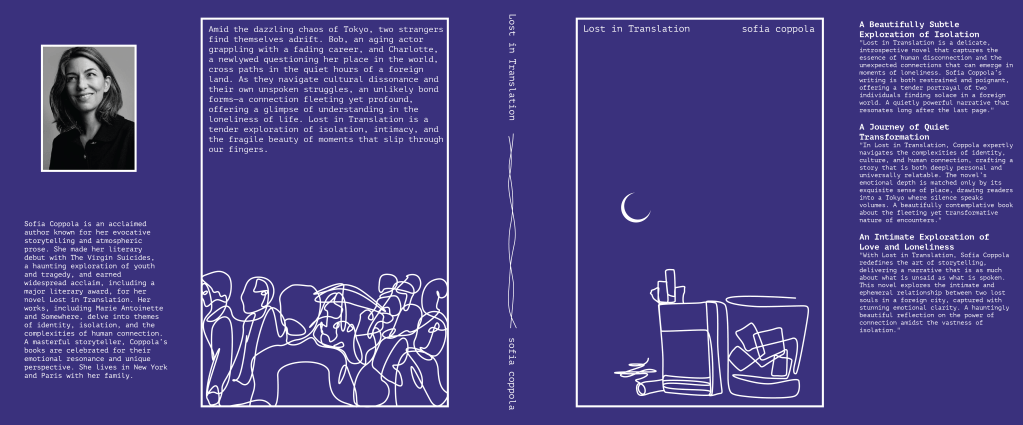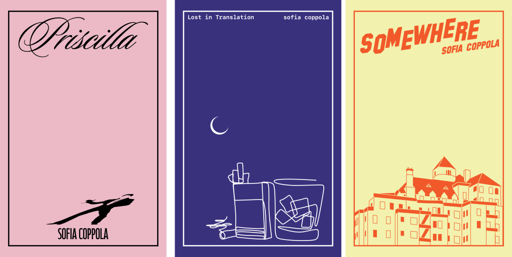 The work shown is an effort to transform three of Coppola’s works into a series of book covers with a cohesive design language that speaks to her style as a director as well as the message and content of each individual film; with the restriction of not using any photos or imagery from any of the films.
